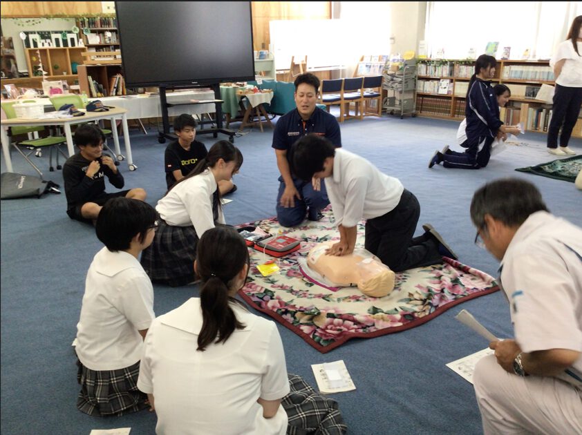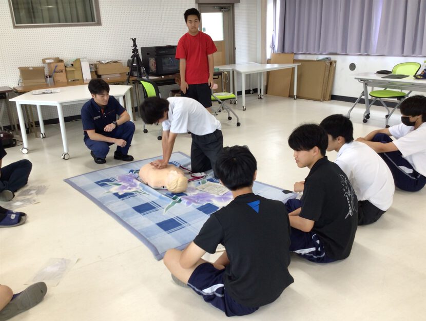 新見消防署から講師の方をお迎えして、5月20日(火)は教職員を対象に、7月4日(金)は生徒を対象に心肺蘇生法講習会を行いました。
