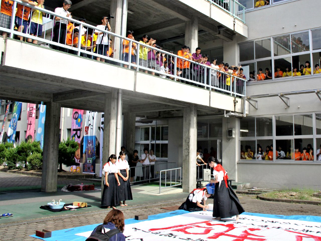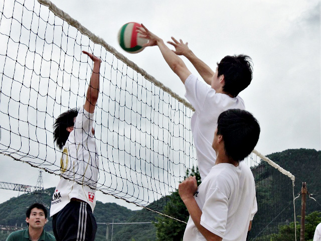 1年から3年まで全校生徒が体育授業発表の場として、全員がバレーボールを行います。 1年生はやはり上手くなくて、3年生にはかないません。しかし、時におこる下克上、脅かされる上級生の地位やいかに? 盛り上がりは凄まじくクラスの団結を深める良い機会となっています。
