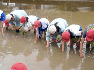 小学校との稲作り・幼稚園との芋掘り・婦人会との花植えなど、地域と密着した交流に力を入れています